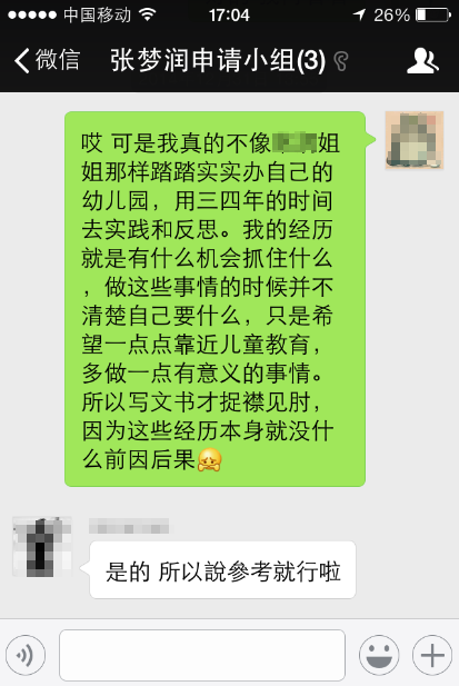 在范德堡大学的申请截止日期一天前,Catherine又对我的PS提出了非常详细的修改意见并拟定了大致的修改框架,但我自己这一次却总觉得无从下笔,好像怎么改都不对。因为和我的导师比起来,自己根本就没什么值得“标榜”的成绩。我发微信给导师“吐槽”(见下图),急的大哭,觉得自己完全无力抓狂了。