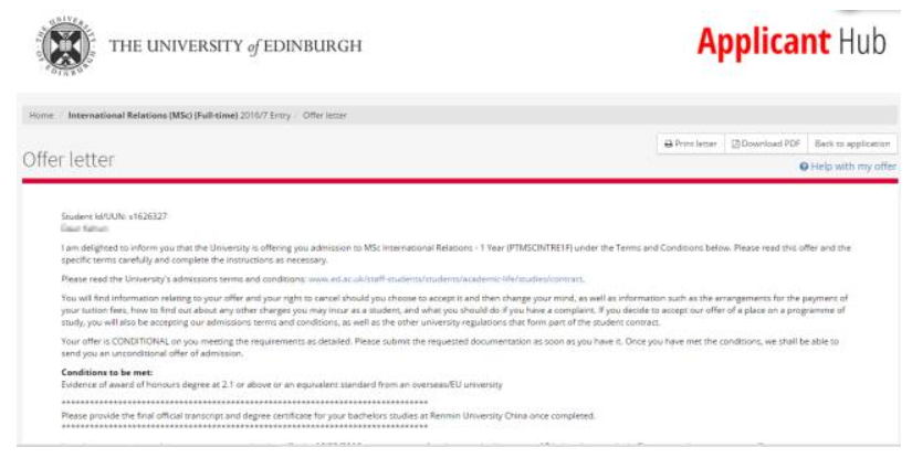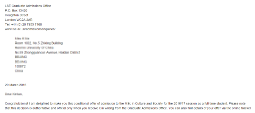 最后,Han收到了LES、KCL、爱丁堡等大学的录取offer。