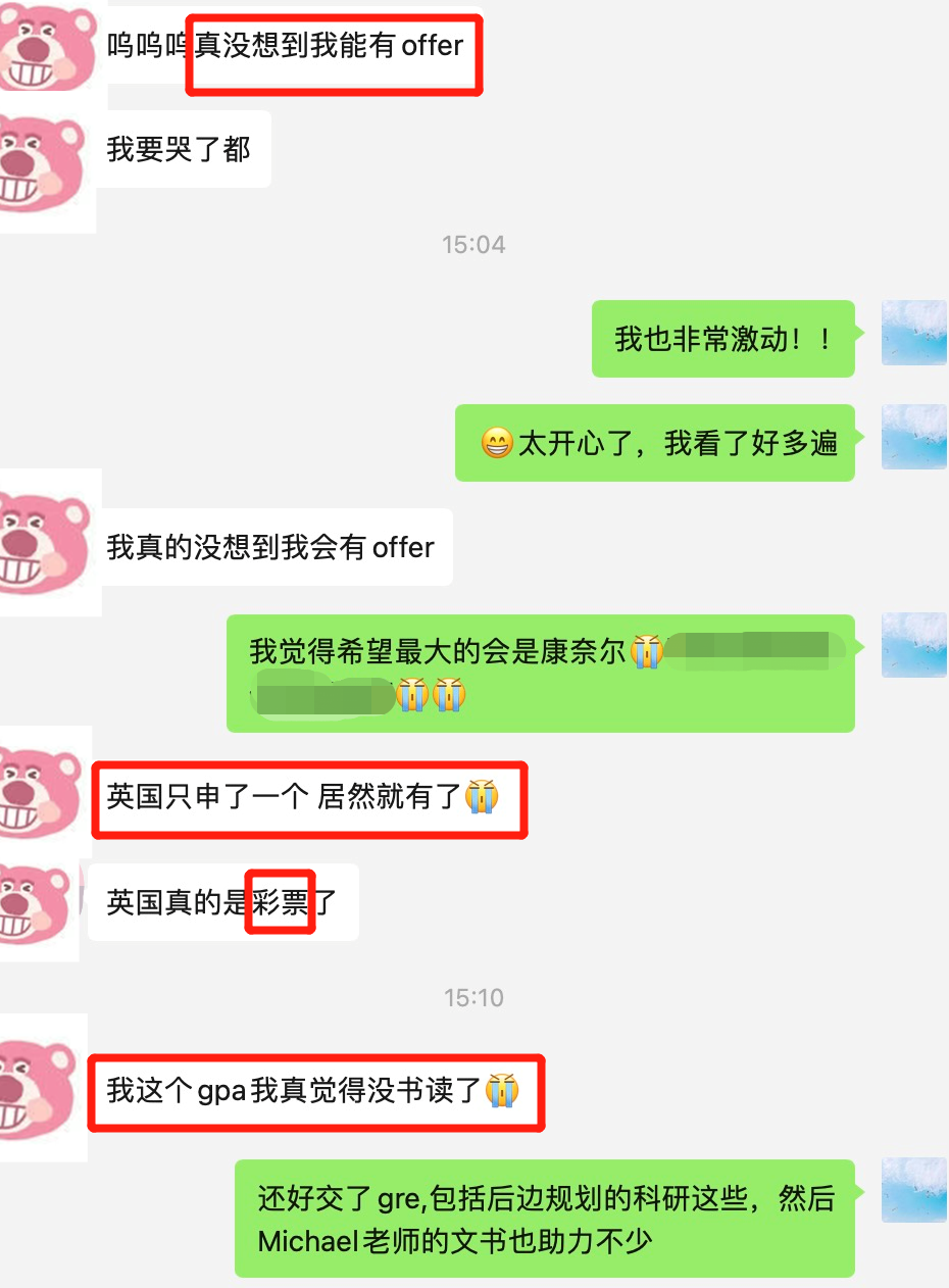 整个准备过程中,申请团队的老师们都事无巨细的耐心指导学生将方方面面的申请材料准备到位,最终以2.4的GPA录取到QS世界大学排名前40的院校,大大大的逆袭!!!
