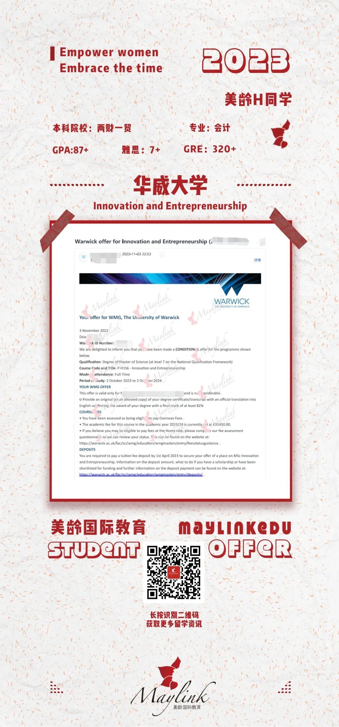 10月底递交,11月拿offer!【华威大学】创新与创业来啦~