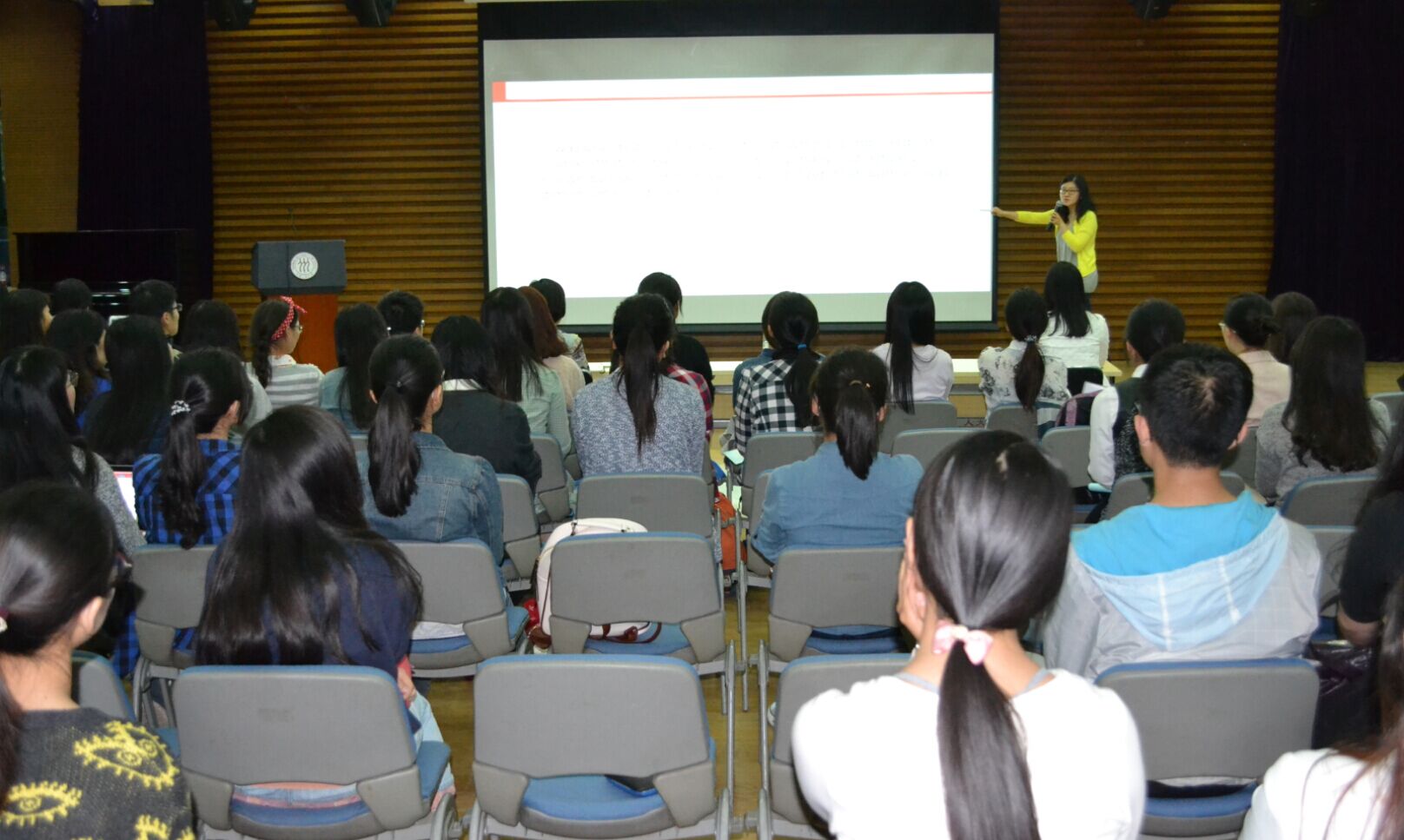 2015年5月8日下午六点半,美龄女性演讲公开课在人大学生活动中心如期举行。近八十多位女生,走进了美龄女性演讲公开课的现场,试图在这里找寻女性演讲的成功法宝。