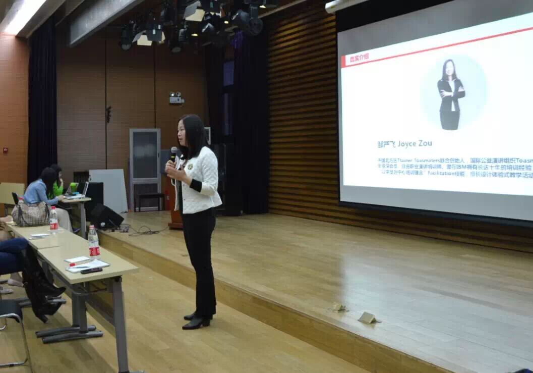 第二位演讲者Joyce是toastmasters的培训师,她本来是一个木讷害羞的工科女孩,但通过演讲技能的训练,最终华丽转型成为了一个演讲大师。
